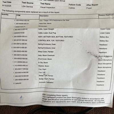 This headset was just fully refurbished by Lightspeed. It has all new controller, plugs, ear cushions, etc. it has some wear on each ear cup. Ready to use. Satisfaction guaranteed with a 30 day warranty.