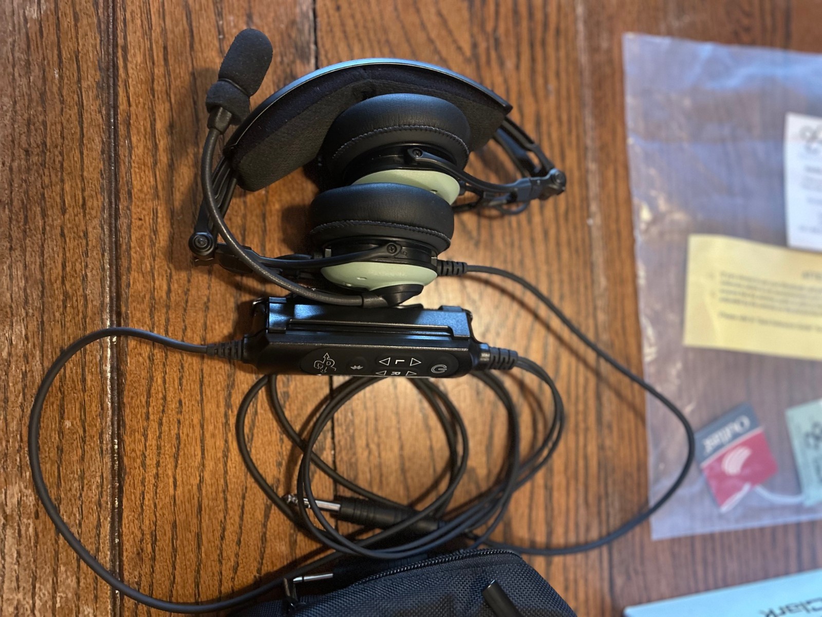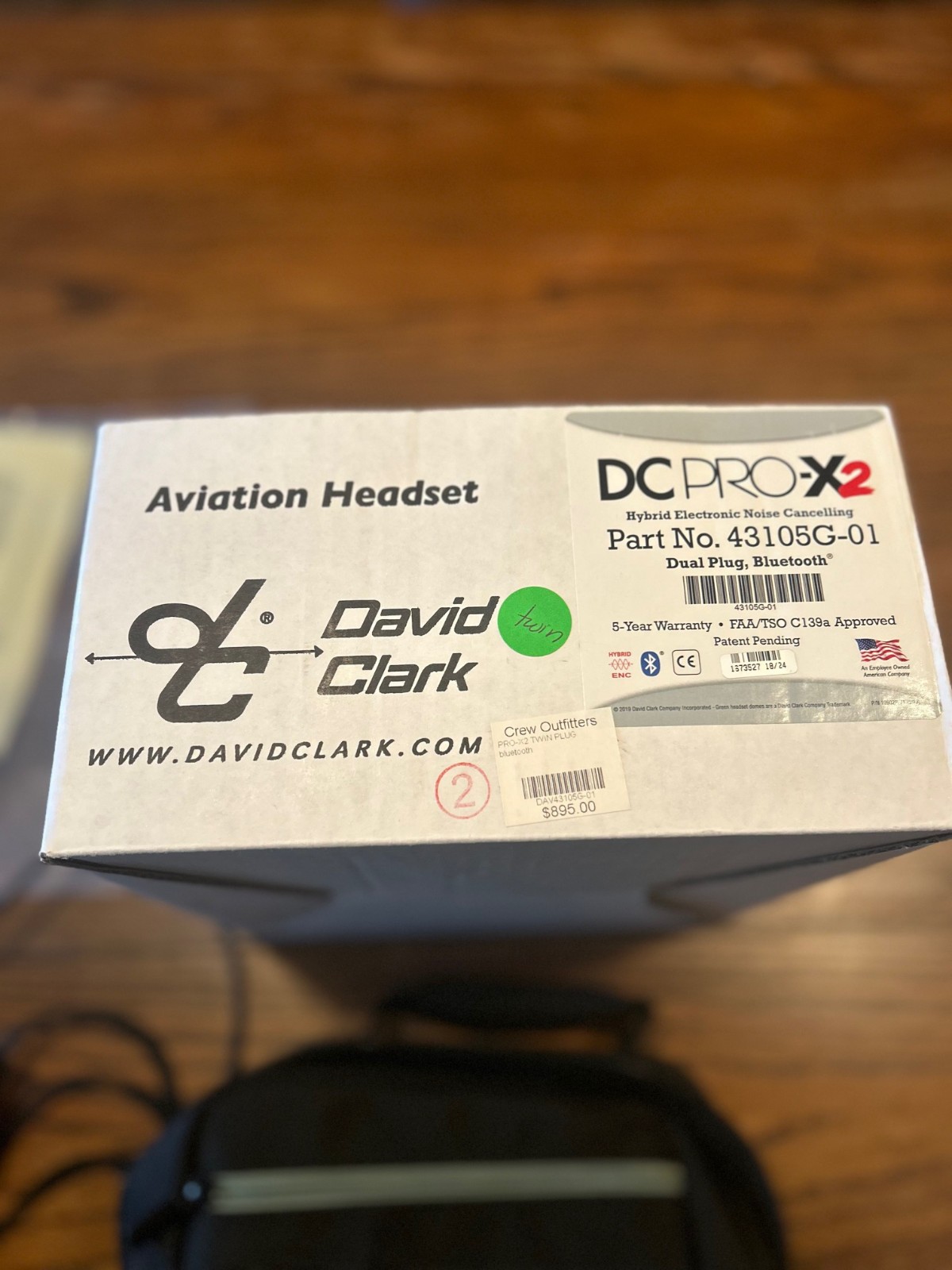 Almost new David Clark Noise Cancelling Headset P/N 43105G-01. This is a dual plug with Bluetooth model and it has only been used once. Comes with box, all documents and warranty card. This is a very clean headset producing clear audio tones and noise cancelling functions. David Clark company produces some of the best aviation headsets in the industry and they back up their products with a full service department. You will not be disappointed with this purchase. Get a great headset which will last your aviation career!