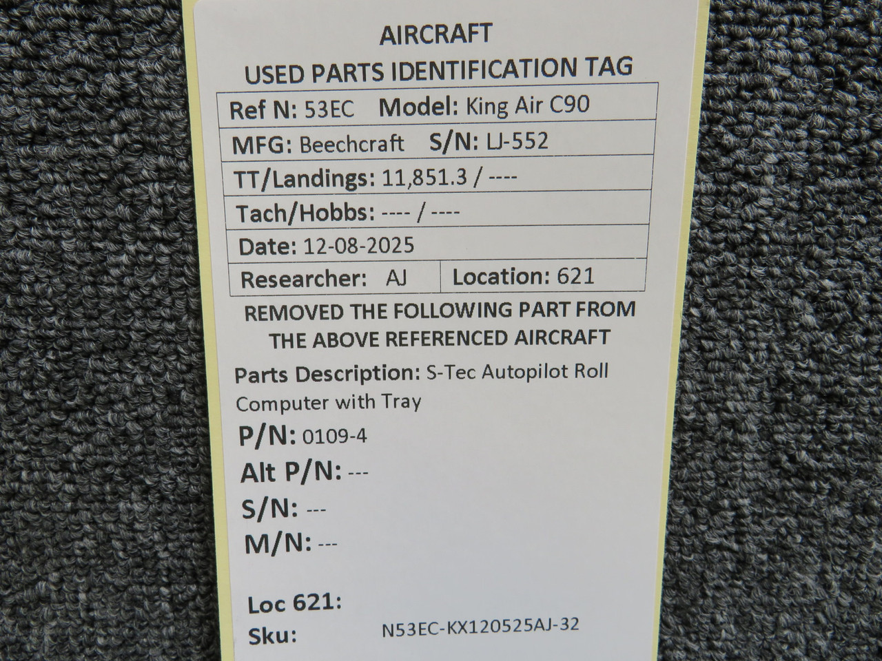 Unless specifically noted, most of our used airplane parts are sold in the condition they were removed, which means you should expect the usual signs of wear and tear.
