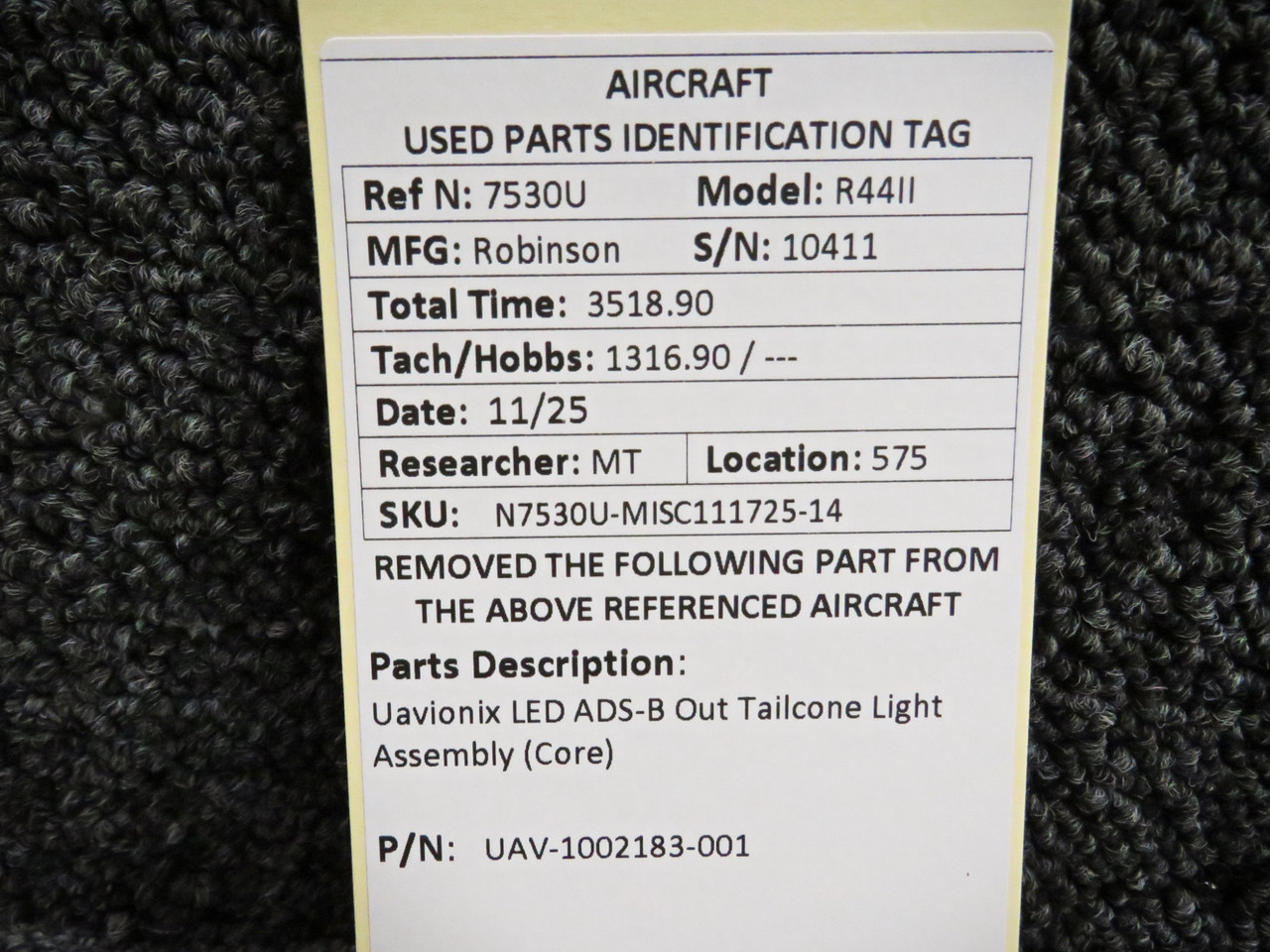 UAV-1002183-001 Uavionix LED ADS-B Out Tailcone Light Assembly (Core)Click here to purchase or contact the seller of this item on eBay |