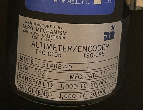 Aero Mechanism Altimeter Encoder 8140B-20Click here to purchase or contact the seller of this item on eBay |