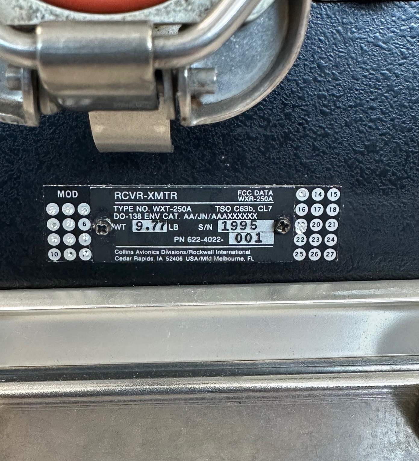 Collins WXT-250A Radar RCVR/XMTR pn: 622-4022-001 sold as shown.