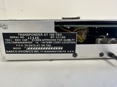 Narco Avionics Transponder AT 150 TSOClick here to purchase or contact the seller of this item on eBay |