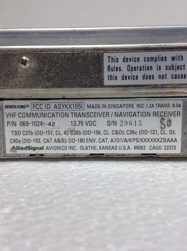 Bendix King KX 155 TSO VHF Comm Transceiver/Navigation Receiver 069-1024-42 w/GSClick here to purchase or contact the seller of this item on eBay |