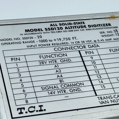 Trans-Cal Industries Model SSD120 Altitude Digitizer / EncoderClick here to purchase or contact the seller of this item on eBay |