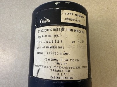 Cessna Gyroscopic Rate of Turn Indicator Aircraft GaugeClick here to purchase or contact the seller of this item on eBay |