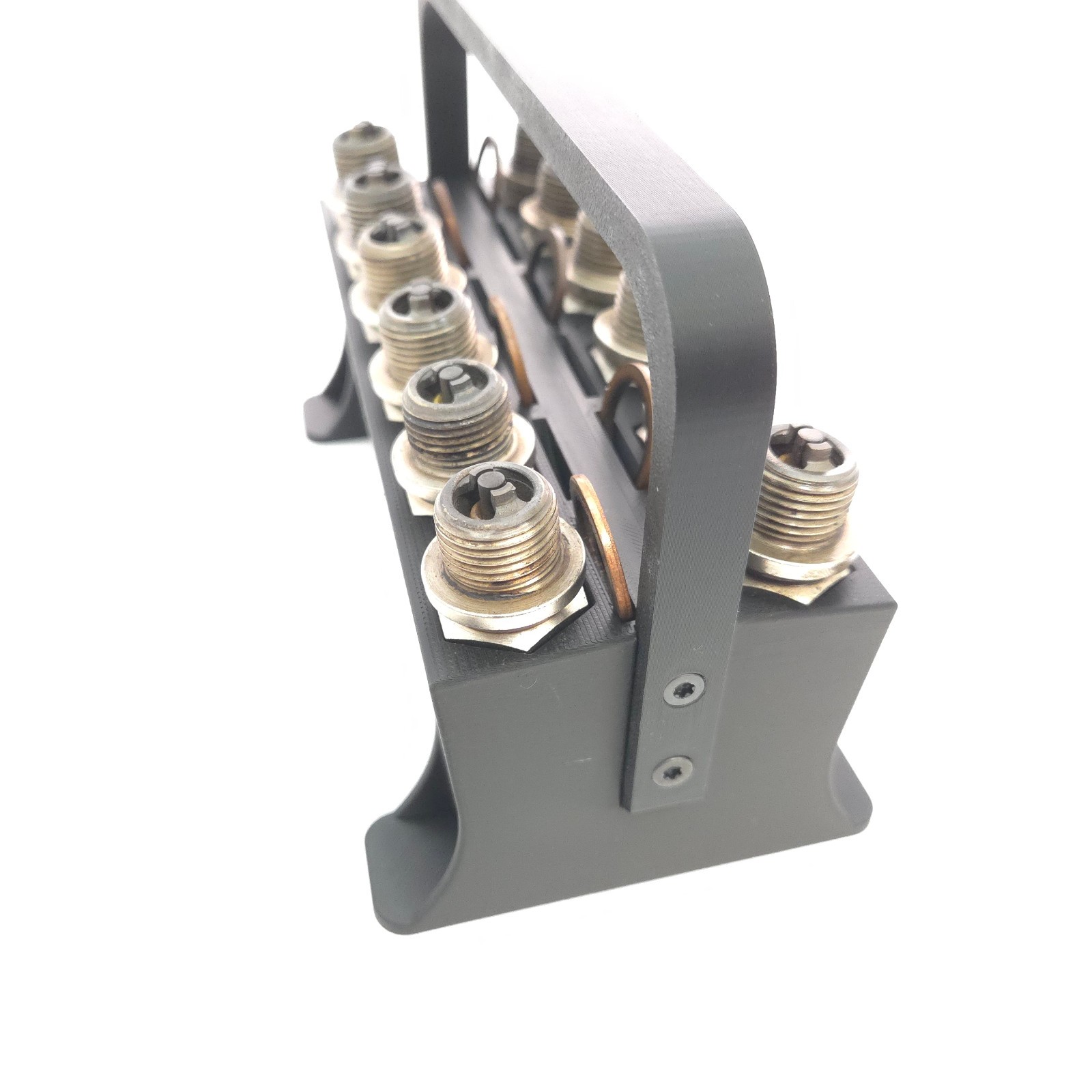 Aviation spark plugs are too expensive and too fragile to handle carelessly or leave laying on a work surface. This durable rack will hold all the spark plugs from a 4 or 6 cylinder engine.