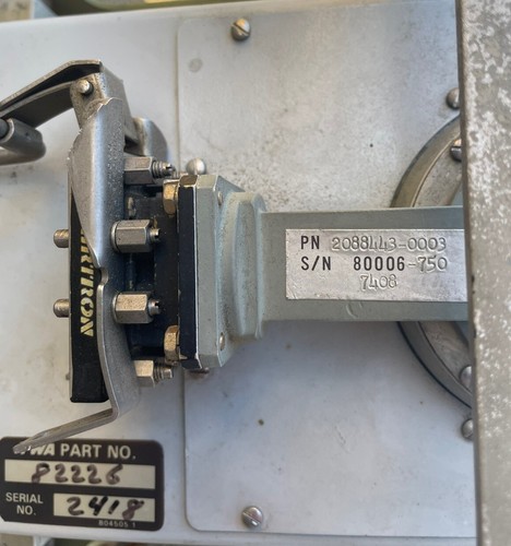 This is an original 2000 era commercial aircraft Bendix weather radar antenna unit. It has the relatively low serial number of 2418. The unit was removed from a TWA 737 aircraft, I believe, after TWA’s bankruptcy around 2001. It was removed in Tulsa, Oklahoma by a Mechanical contractor and was deemed to be in operating condition. However, it hasn’t been used since that time and I have zero ways of testing this unit. I’m selling it as is, for parts of restoration or as a very nice collectible.