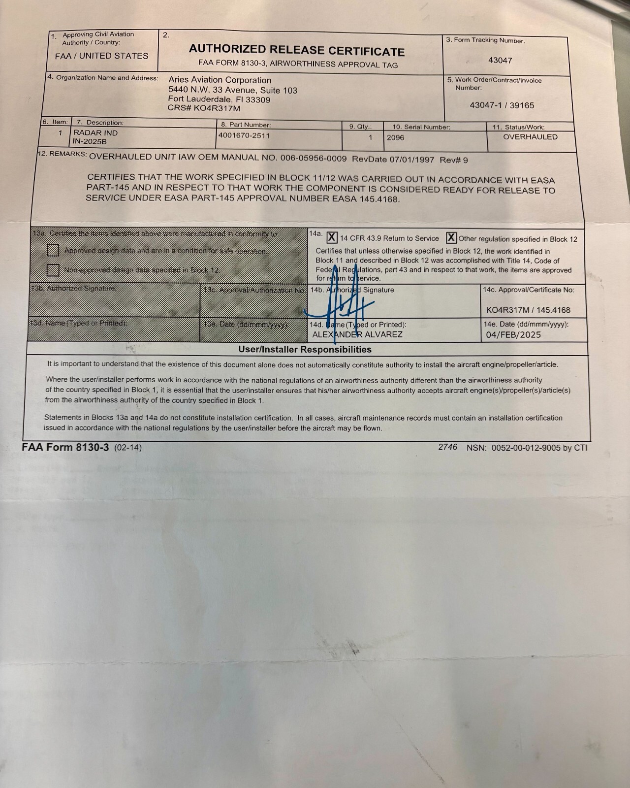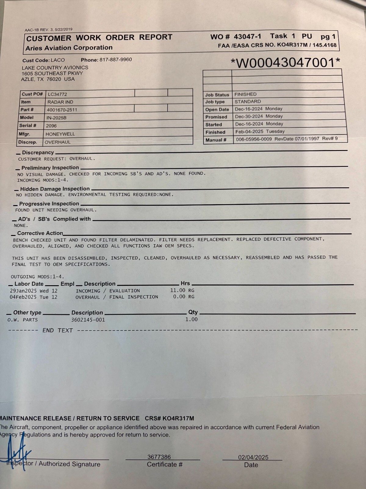 Radar Indicator IN2025B 4001670-2511 w/ February 2025 Overhauled 8130Click here to purchase or contact the seller of this item on eBay |