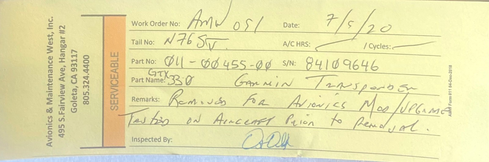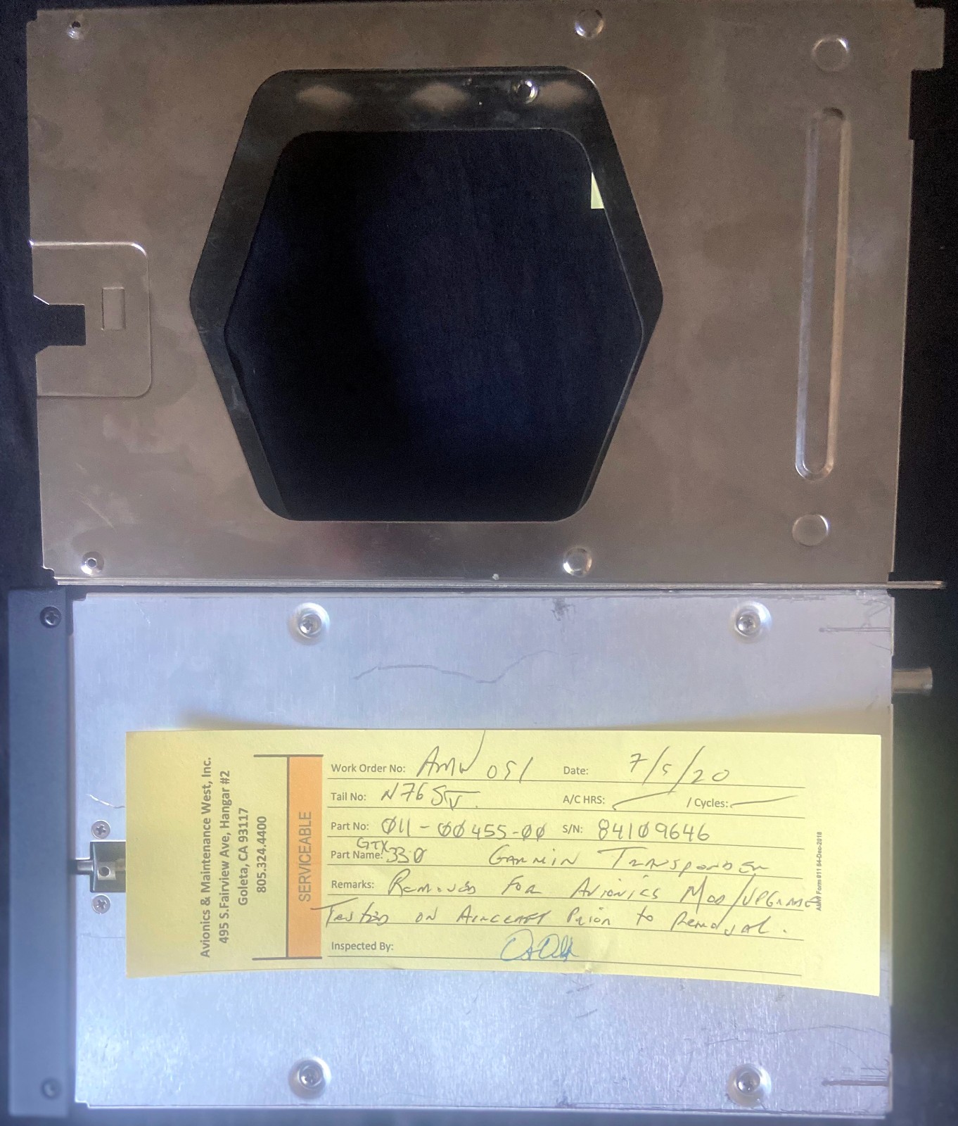 Unit has been Yellow‑Tagged, meaning inspected by a certified avionics technician and tagged serviceable.