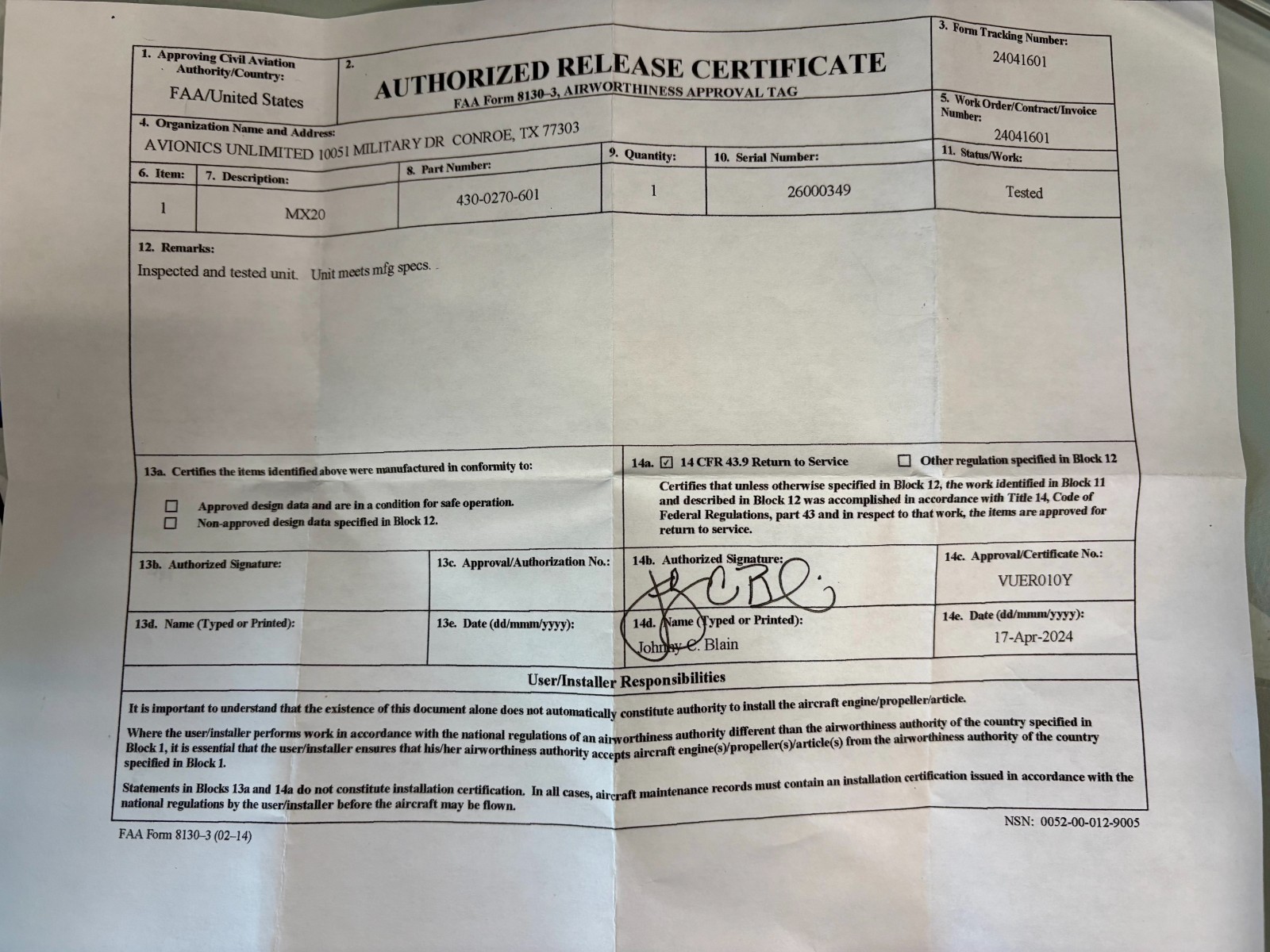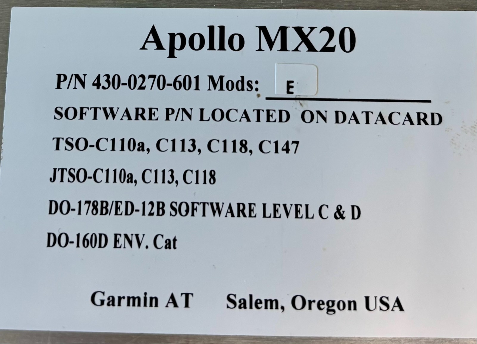 MFD MX20 430-0270-601 w/ April 2024 Tested 8130Click here to purchase or contact the seller of this item on eBay |
