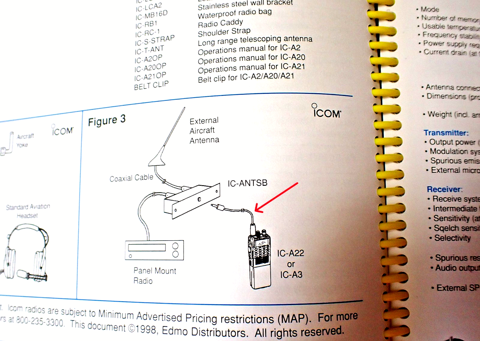 Antenna switchbox interconnect cable for aviation handheld radio transceivers.