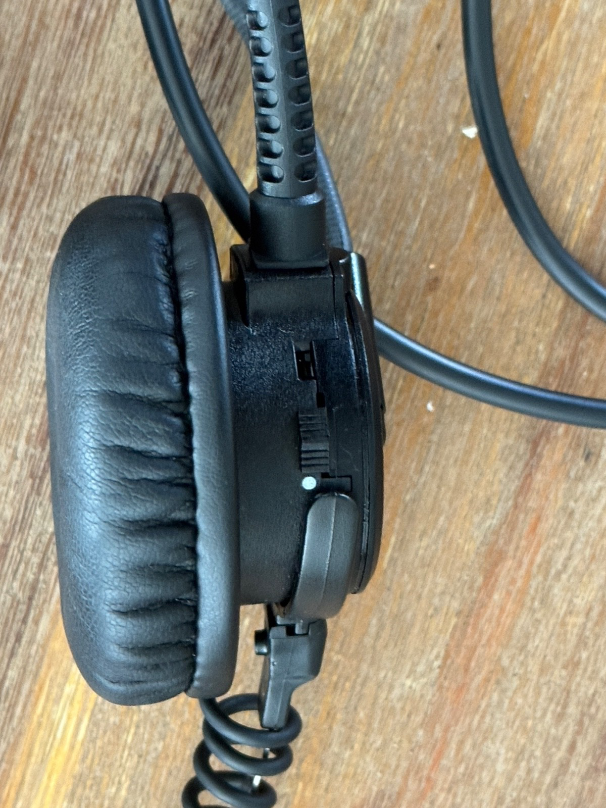 - Controls: Includes an ANR On/Off switch and a Normal/High volume switch on the ear cup.