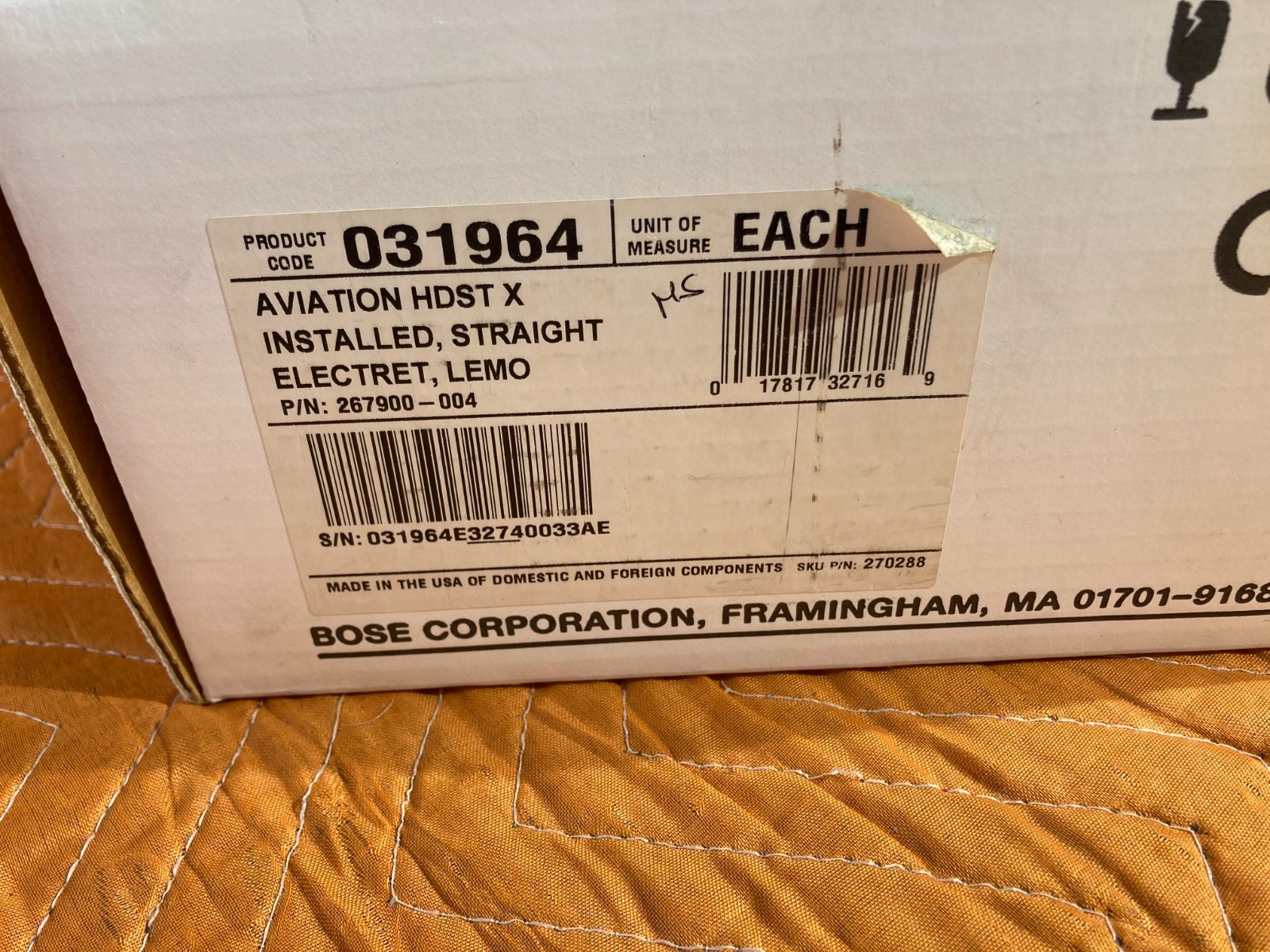 Bose X Aviation Headset, straight cord, electret mic, LEMO plug in like new condition.