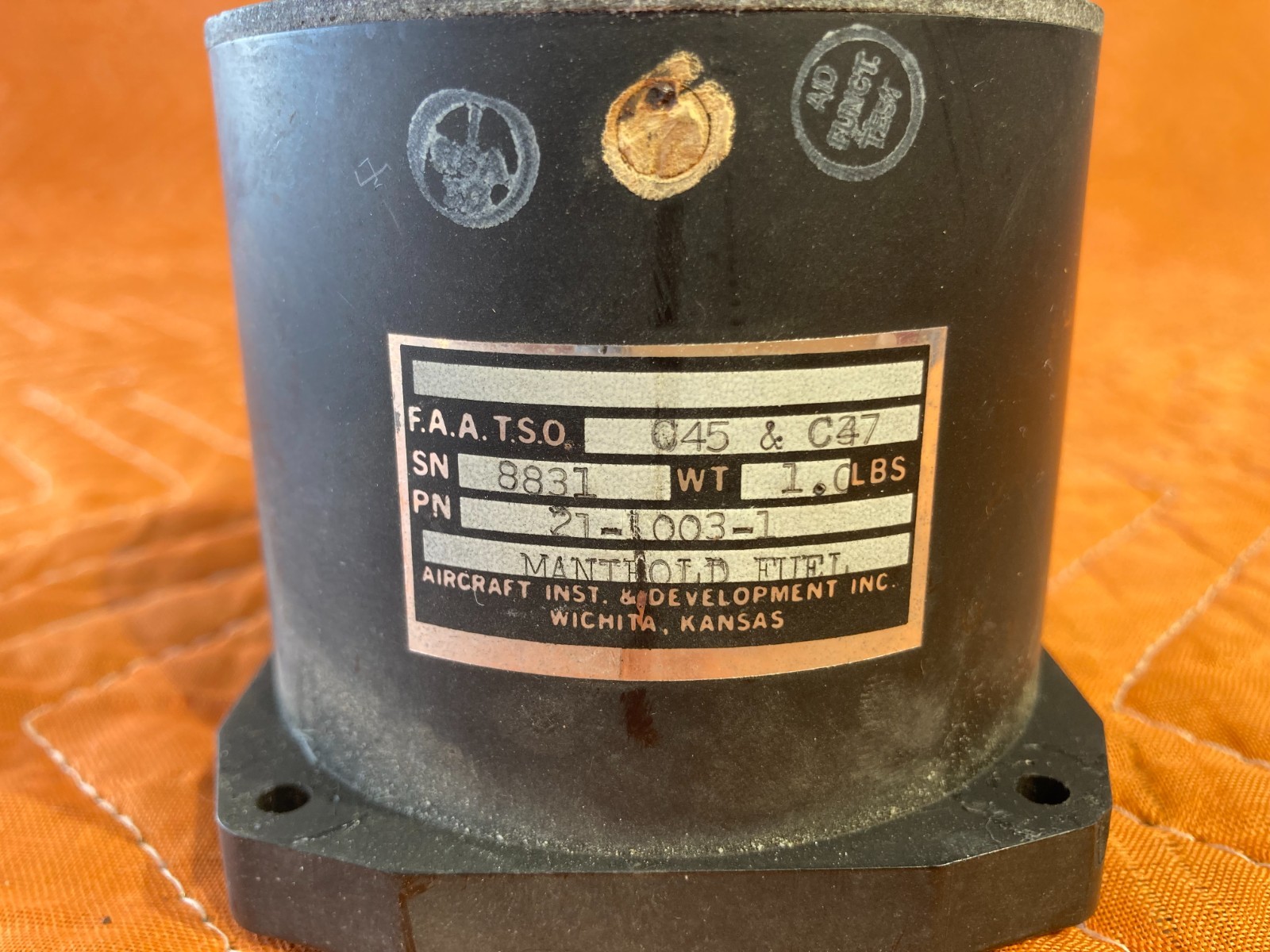 Aircraft Manifold Pressure and Fuel Flow Combination Gauge P/N 21-1003-1Click here to purchase or contact the seller of this item on eBay |