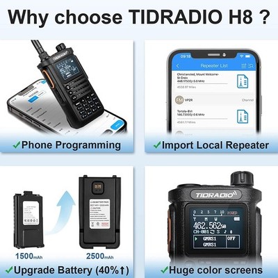 - 【Radio Customizable on Phone】- Using the Odmaster Programmer App, you can easily customize all aspects of your H8 radio. You can directly import local GMRS repeaters. Programming your H8 offline, while supporting web sync. You can program anytime and anywhere