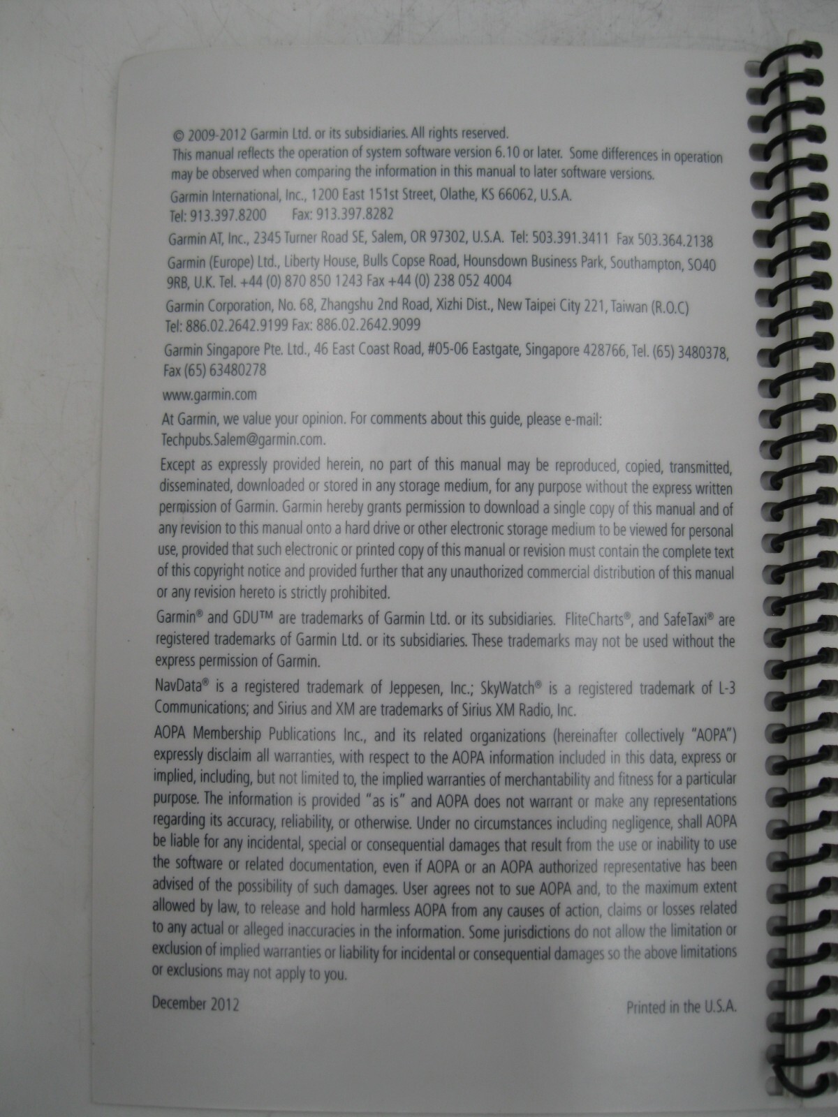 GARMIN G500 COCKPIT GUIDE REV. G PN: 190-01102-03Click here to purchase or contact the seller of this item on eBay |
