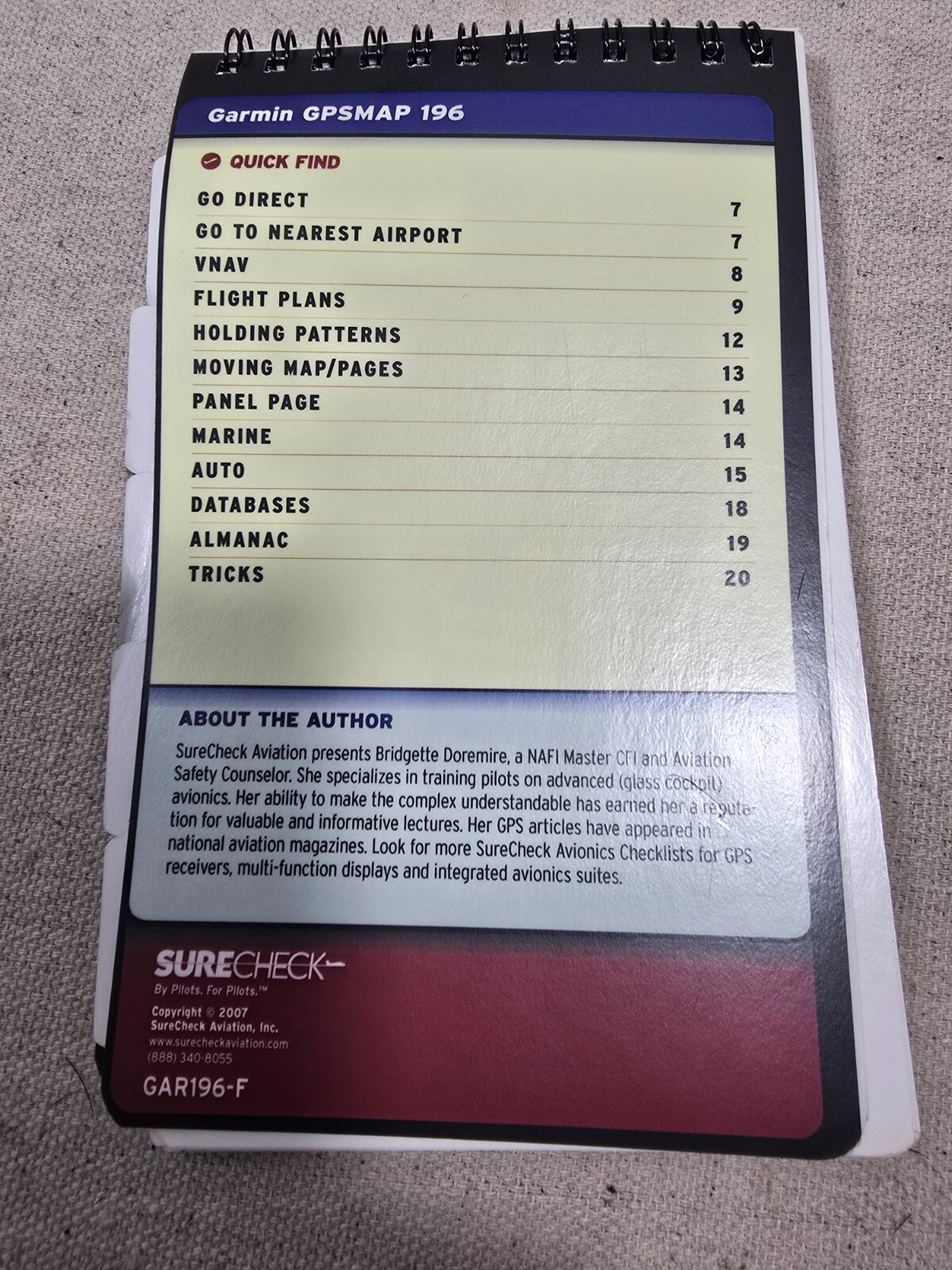 Garmin GPSMAP 196 Aviation GPS Pilots SureCheck Avionics ChecklistClick here to purchase or contact the seller of this item on eBay |