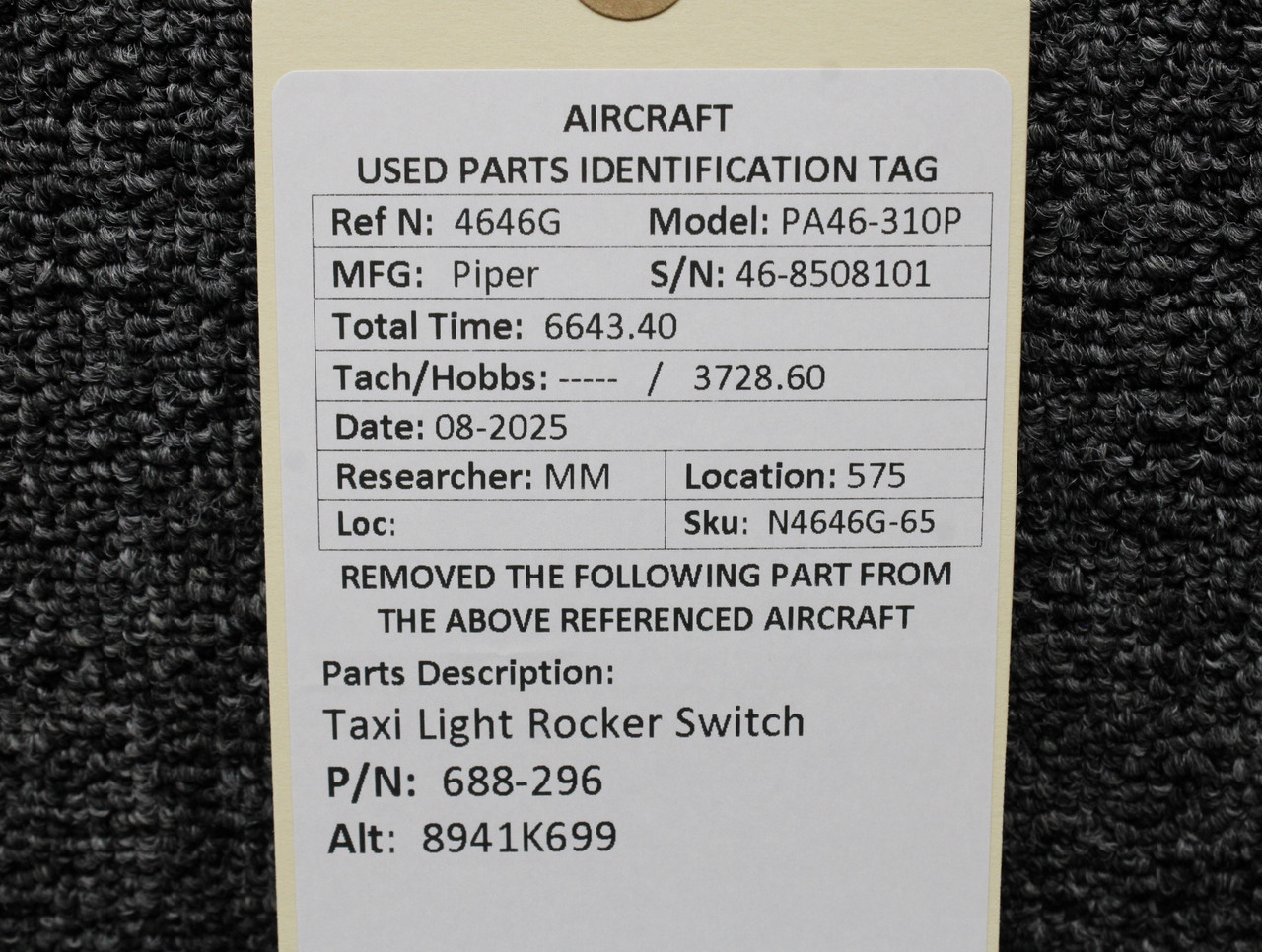 688-296 (Alt: 8941K699) Piper PA46-310P Taxi Light Rocker Switch