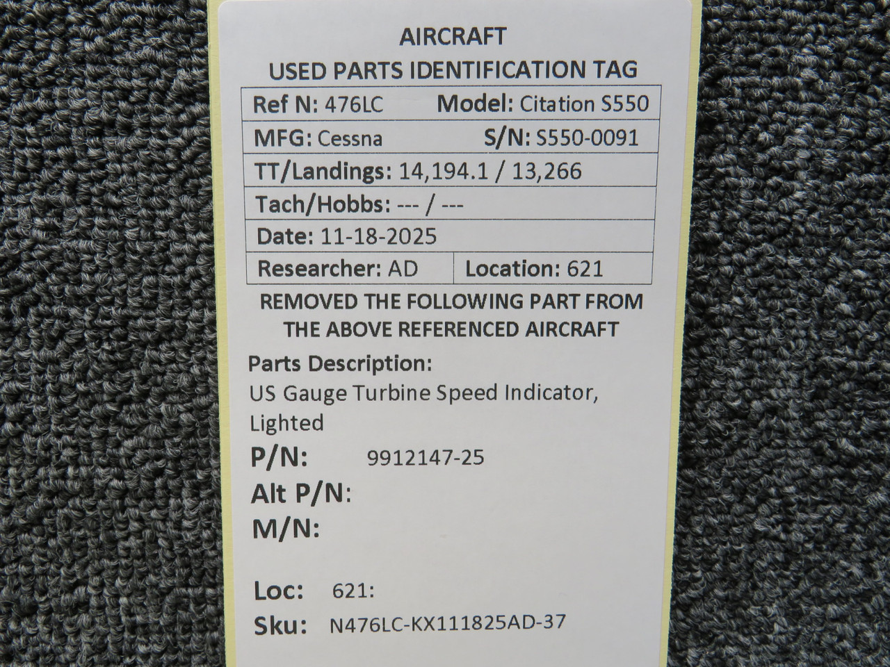 Unless specifically noted, most of our used airplane parts are sold in the condition they were removed, which means you should expect the usual signs of wear and tear.