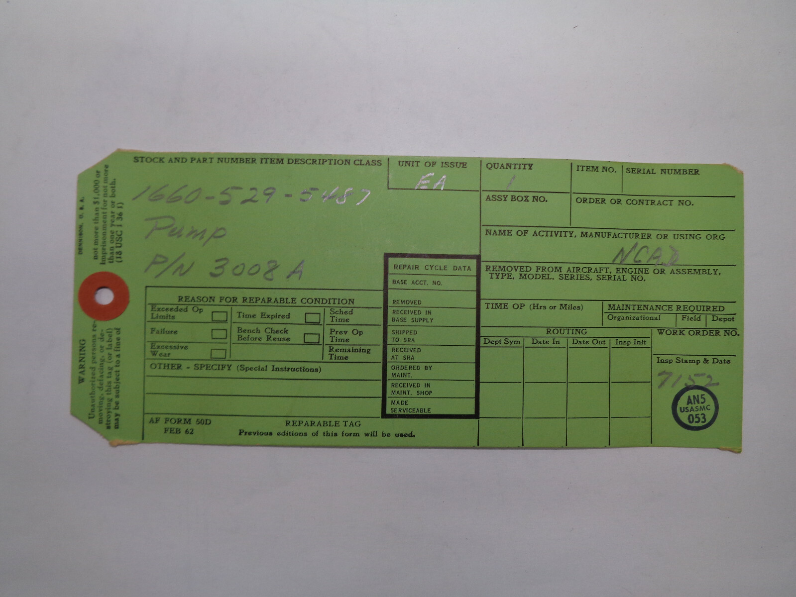 The Weldon Tool Aircraft Fuel Pump, 1 unit. We are not sure if unit is used or new.