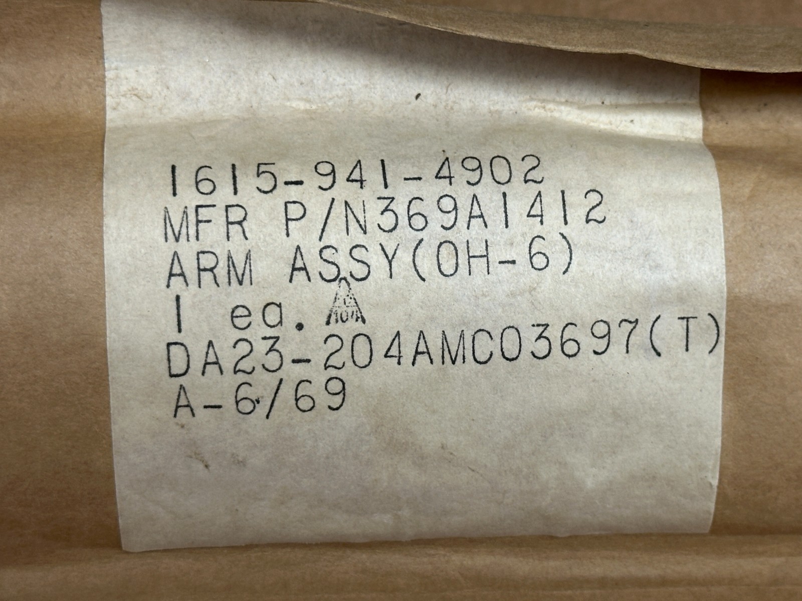 Buyer receives 1 each Hughes Helicopter OH-6 Cayuse Arm Assembly PN 369A1412 New Surplus. Low price, list over $800. Buy more and save eligible. Under $100 each qtys 4+ Please contact with any questions.