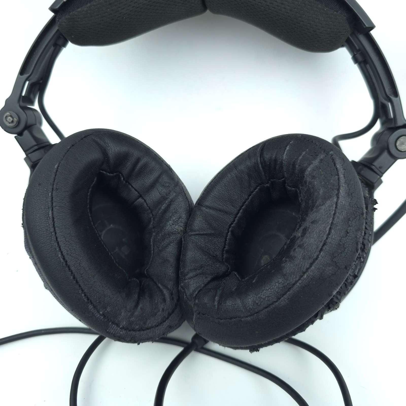 - Condition: Headset is in great working conditions but it will need new ear pads. No issues with audio sound or microphone. Other than the wear on the ear pads, no flaws. Requires 2 AA batteries (not included). Carrying bag has some wear.
