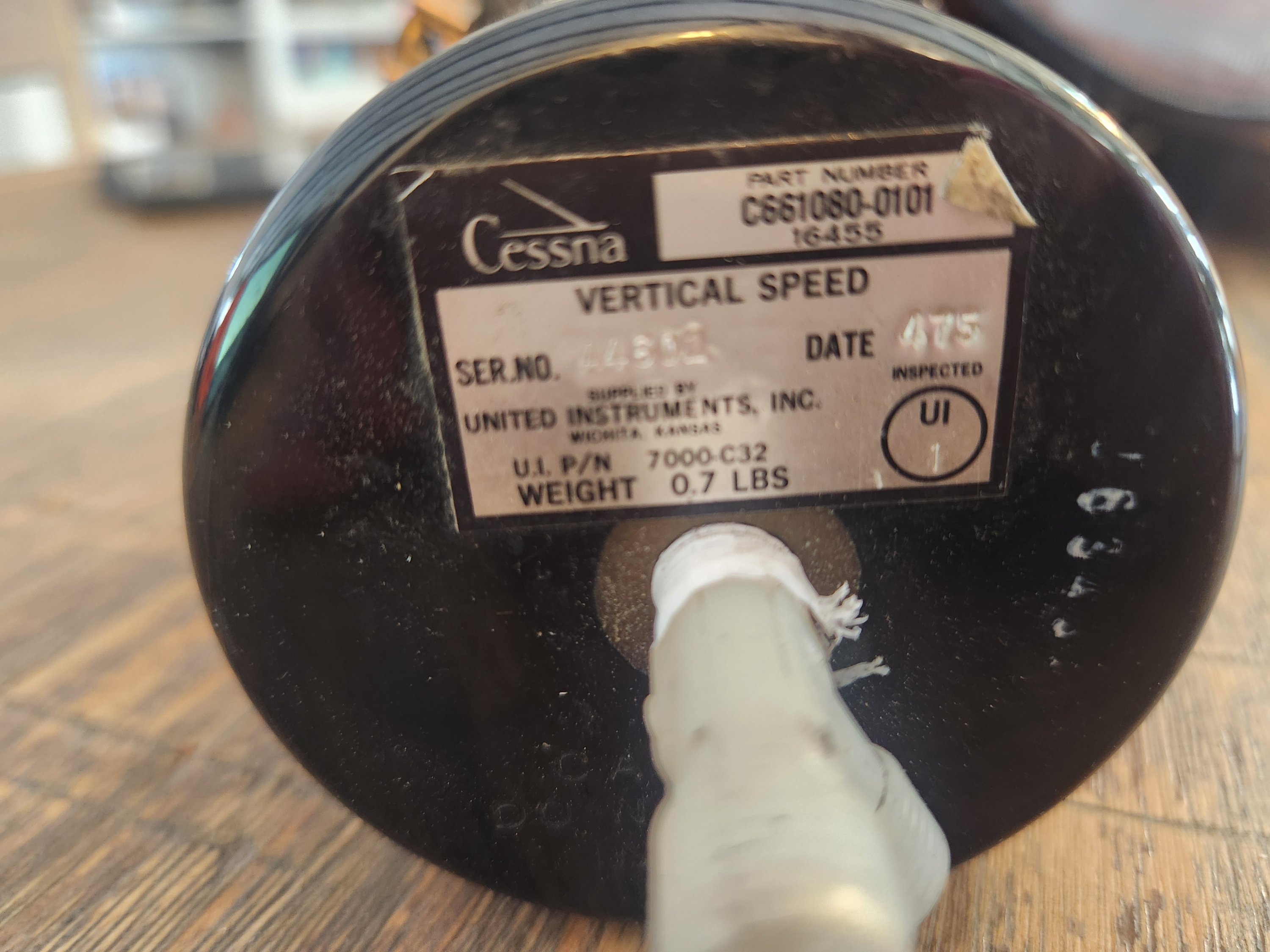 Used United Instruments Inc. Vertical speed indicator. Cessna PN C661080-0101. UI PN 7000-C32. SN A4601
