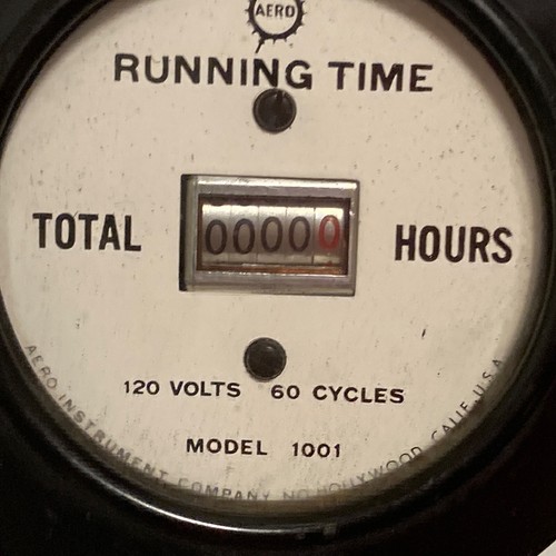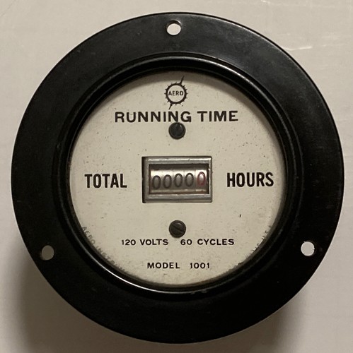 Vintage Aviators Running Time Hour Meter Gauge Mfg. by Aero Instrument Company of No. Hollywood, California. NOS - New, old stock. No factory box. 120 volts, 60 cycles. Model 1001. Zero hours have been recorded on this unit. See pics for further details. If you have any questions about this item, please ask. Estate item, all sales are final and no returns. Shipped fast via USPS Ground Advantage Shipping Service. Thanks! Super-Low $ Buy It Now!