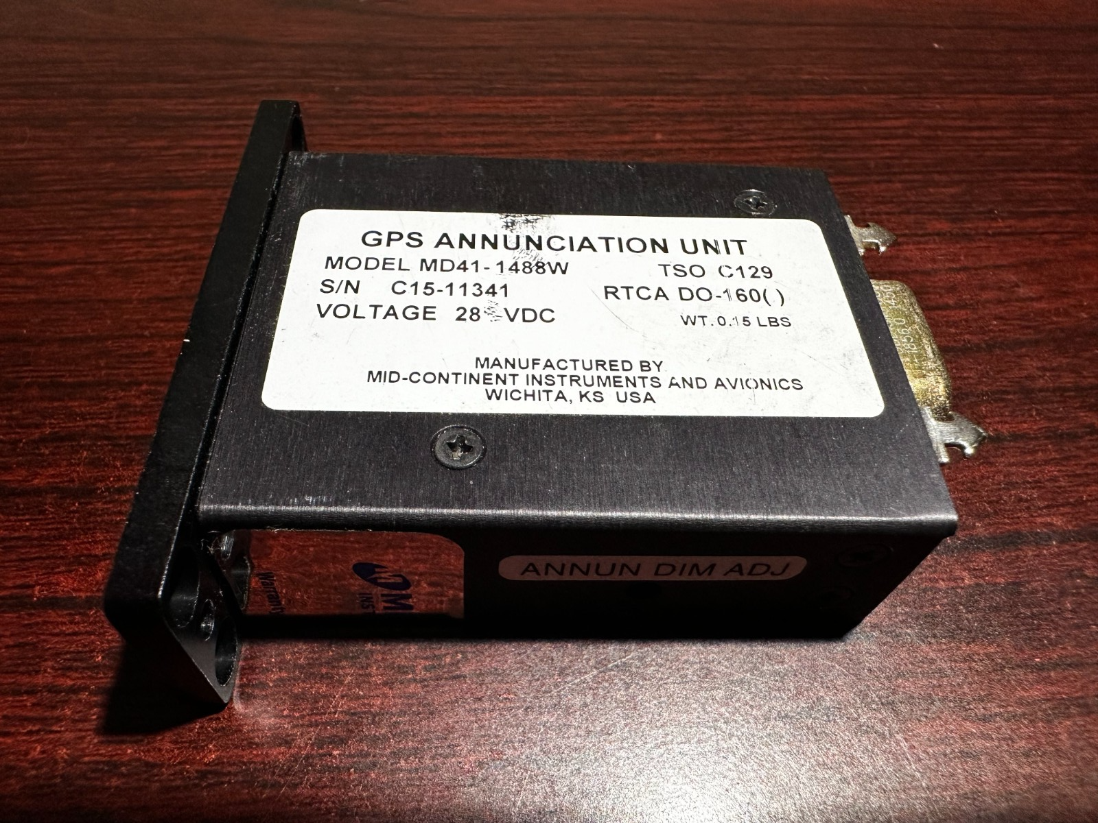 Mid-Continent GPS annunciation unit MD41-1488W for Garmin GTN 650/750 or Avidyne IFD540. Tested in good condition. No connector or documentation included. Can be returned within 30 days for any reason.
