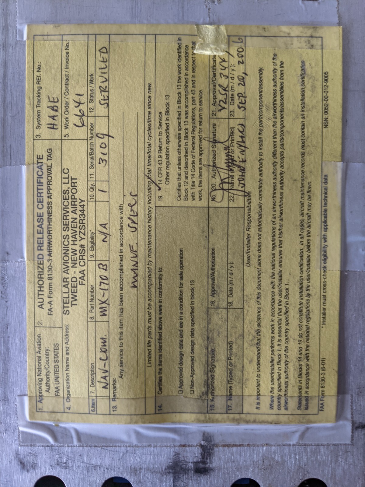 Michel MX 170B NAV/COM Direct replacement for Bendix King KX 170B in as removed working order with yellow 8130