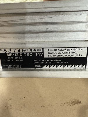 Narco - MK-12D TSO NAV/COMM 14 volt W/TrayClick here to purchase or contact the seller of this item on eBay |