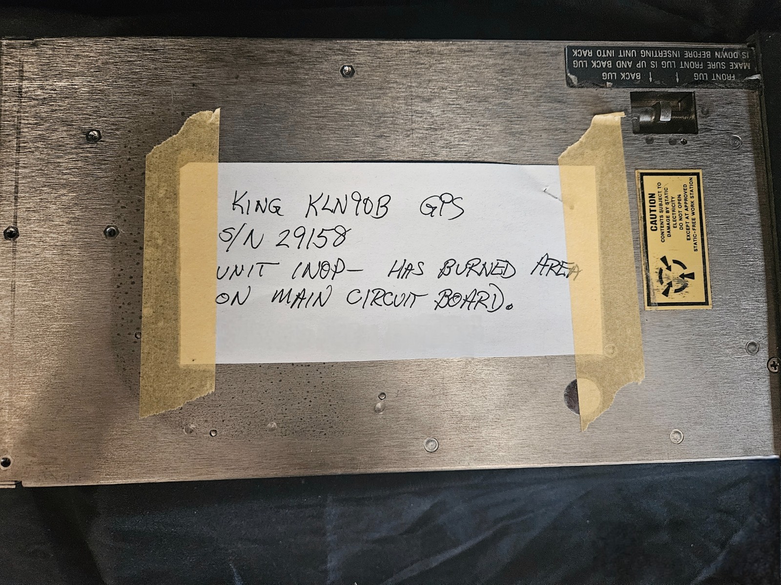 This Bendix King KLN90B (INOP) (P/N 066-04031-1122) (SN: 29158). The unit has a burned area on the main circuit board. Currently selling it in AS REMOVED condition.