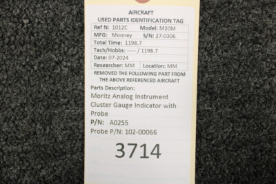 A0255 Mooney M20M Moritz Analog Instrument Cluster Gauge Indicator with ProbeClick here to purchase or contact the seller of this item on eBay |