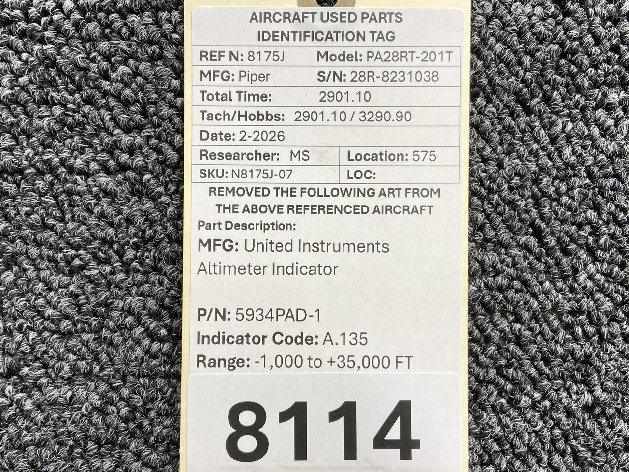 Unless specifically noted, most of our used airplane parts are sold in the condition they were removed, which means you should expect the usual signs of wear and tear.