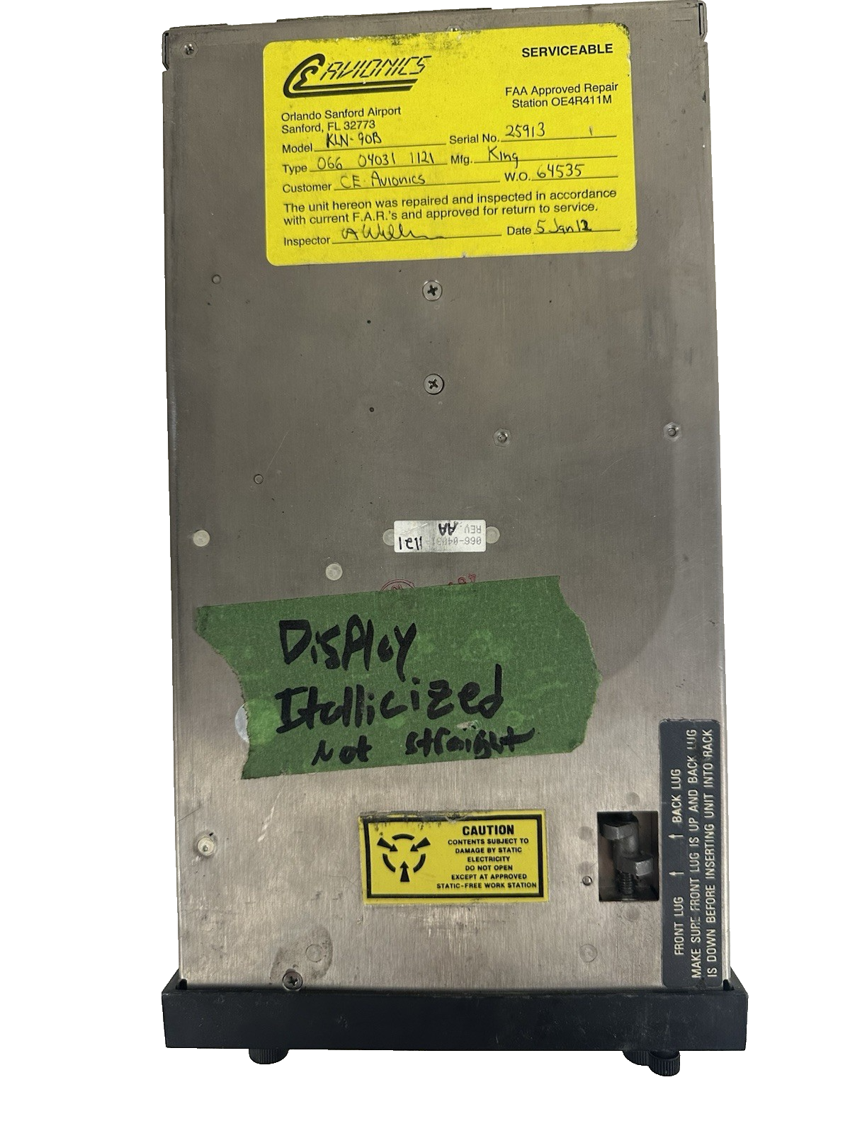 Selling as-is - Unit has yellow serviceable sticker for FAA approved repair dated 1/5/2012.