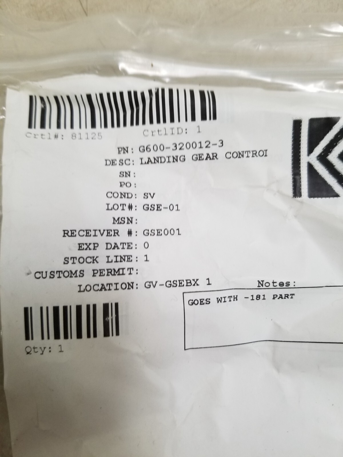 Landing Gear Control G600-320012-3Click here to purchase or contact the seller of this item on eBay |