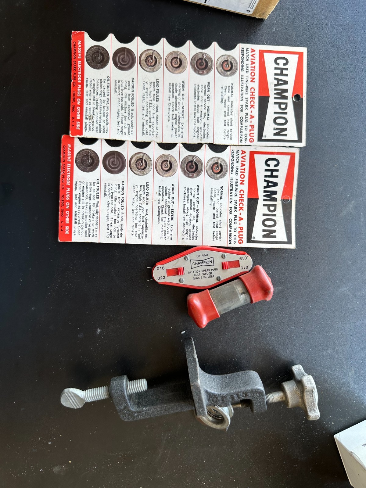 A low-cost efficient gap setting tool for closing gaps on massive-electrode Aviation Spark Plugs. Great design allows it to clamp on to your workbench for easy gapping. |
