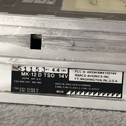 Narco Mk-12D TSO 14VDC PN51153 No Glide Scope Untested As RemovedClick here to purchase or contact the seller of this item on eBay |